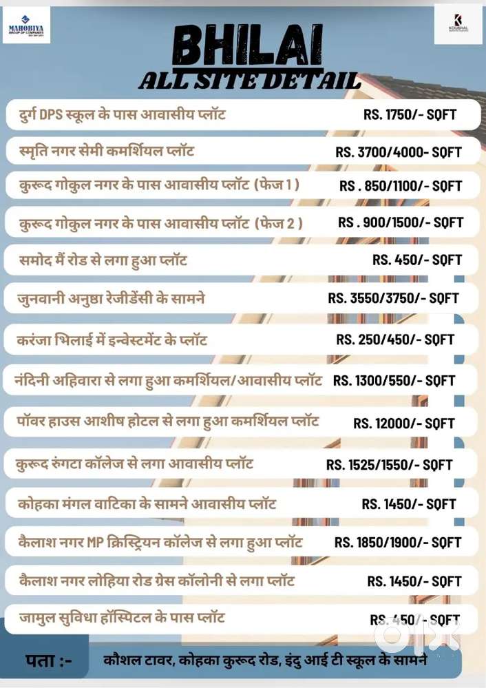 - ₹ 11,60,000Residential Plots Near Rungta College Mangal Vatika Road”Kurud, Bhilai2 days ago