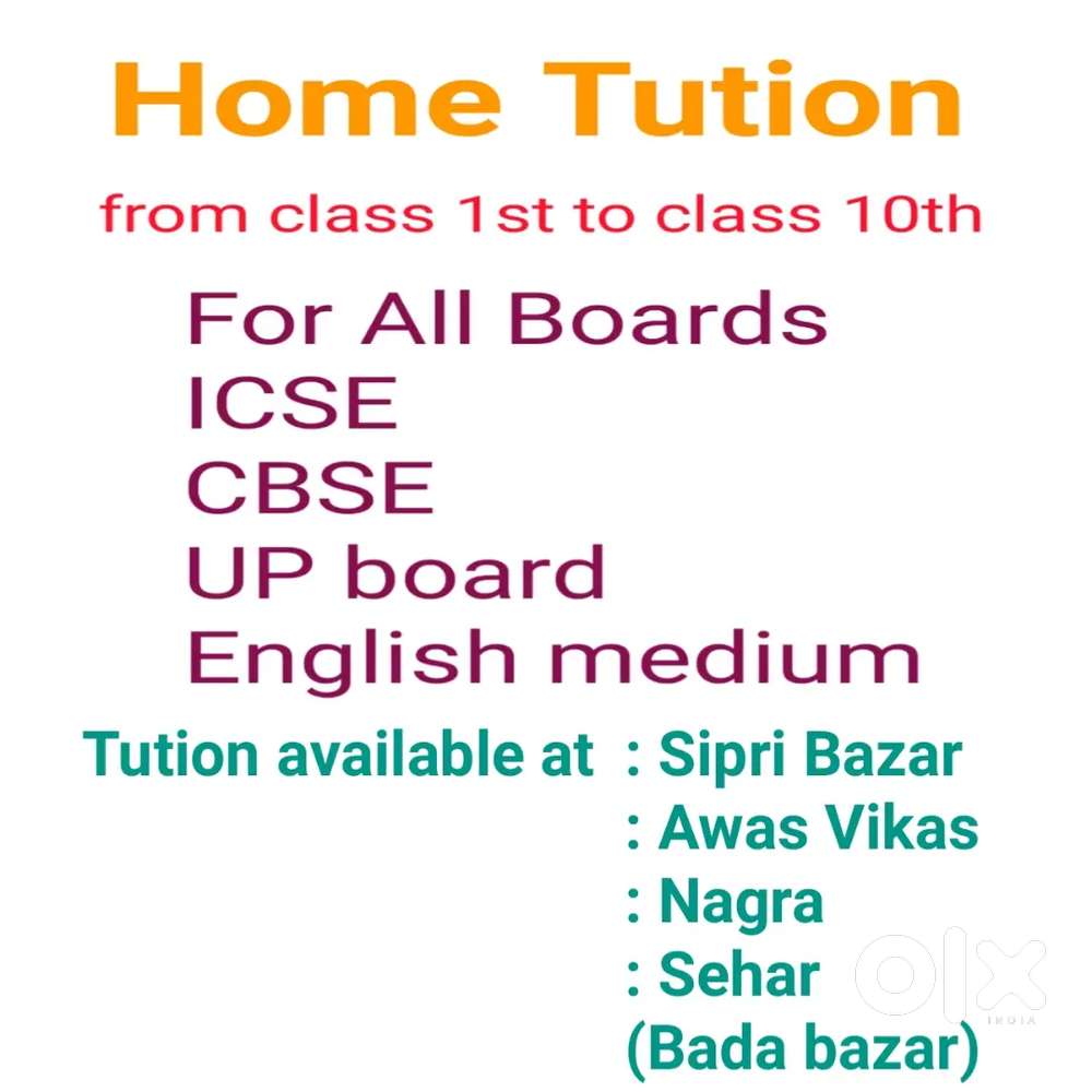 - Home tuitions for class 1-10 of all boards and I also teach AISSEE.Vardan Bihar Colony, Jhansi15 Dec