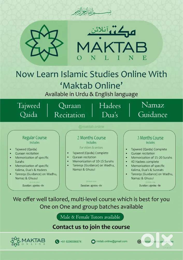 - Maktab OnlineBangalore City Municipal Corporation Layout, Bengaluru22 Dec