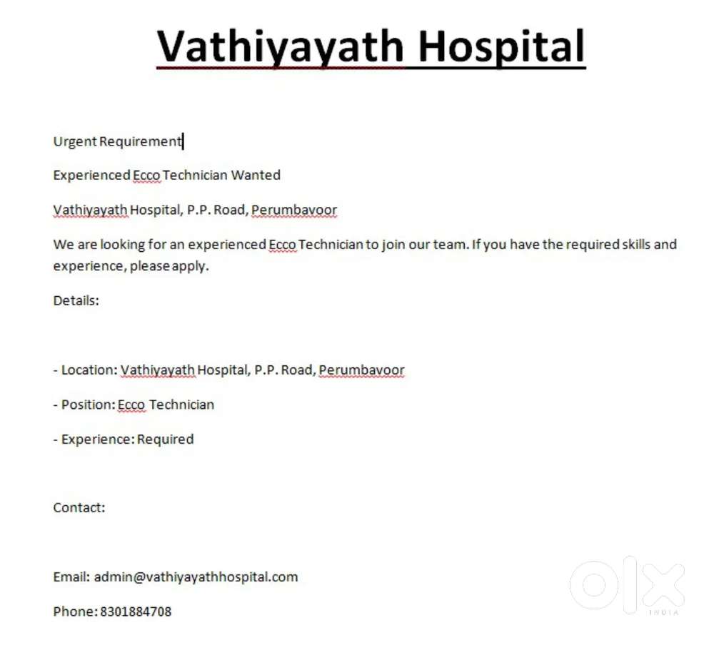 - ₹ 15000 - 18000 | MonthlyECCO technicianChelamattom, Perumbavoor1 Dec