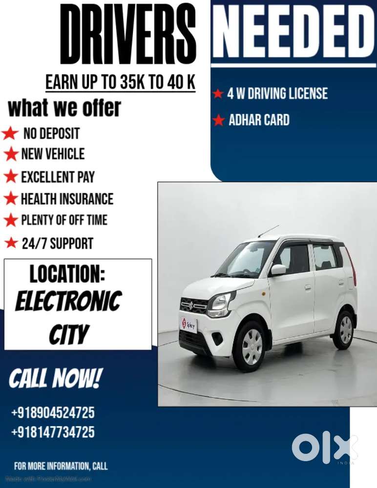 - ₹ 30000 - 45000 | MonthlyUber ola driver vacancy for wagon r and dzireEdapally, Kochi29 Nov