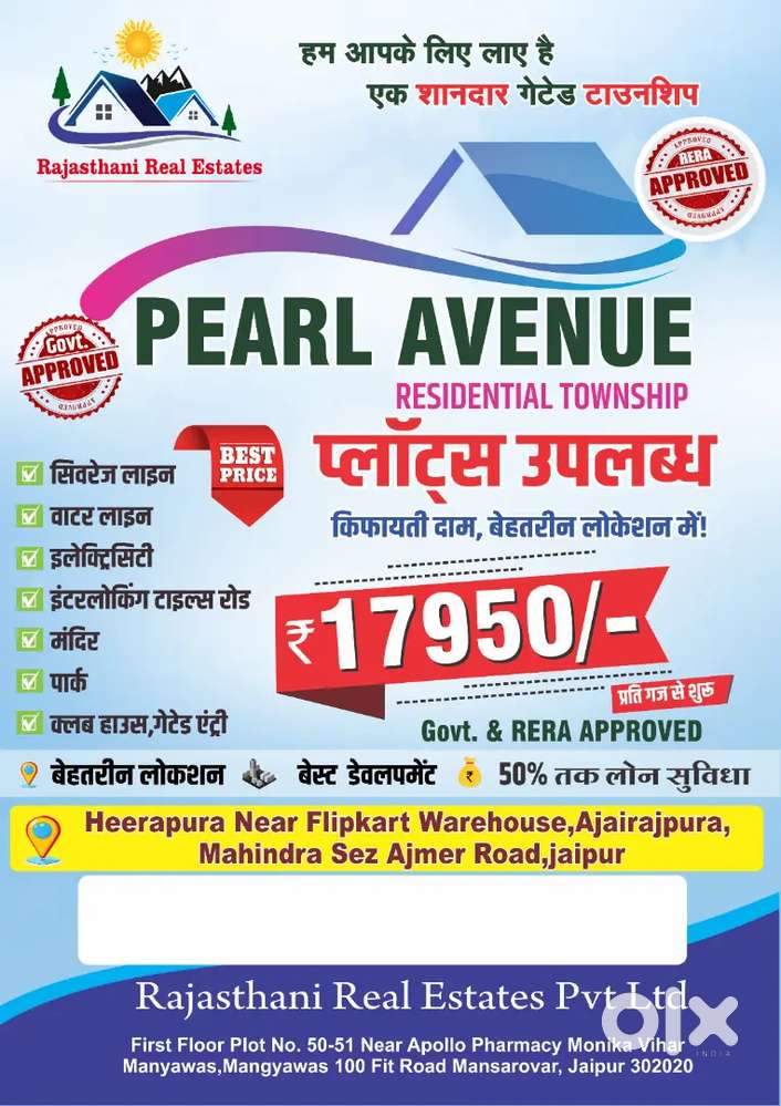 - ₹ 23,00,000GATED TOWNSHIP ME APNA KHUD KA PLOT MAHINDRA SEZ KE PAS.Mahindra SEZ, Jaipur2 days ago