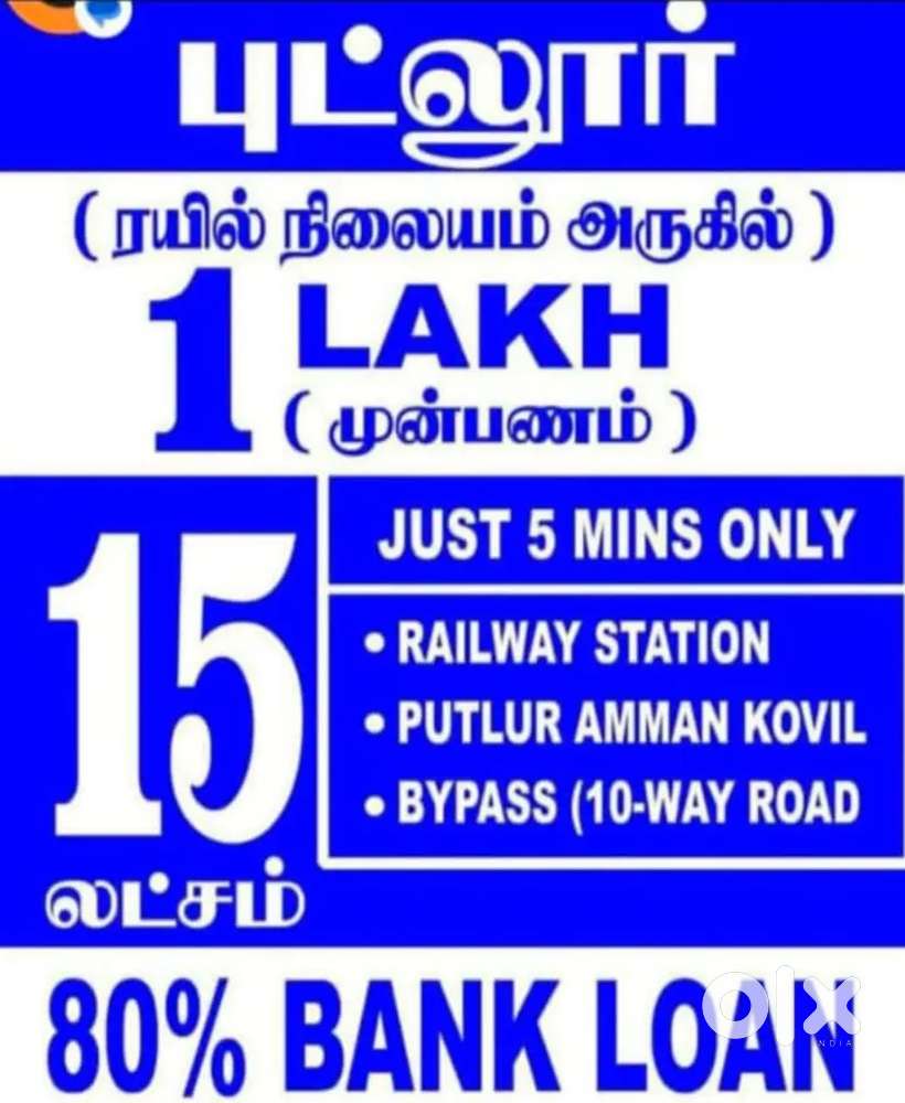 - ₹ 15,00,000PLOTS FOR Sale in PUTLUR 500 Mtrs Peripheral Road & Railway StationVillivakkam, ChennaiToday