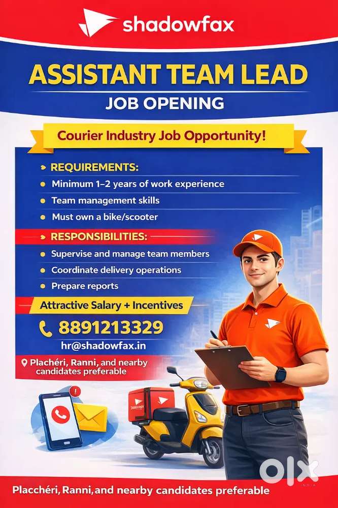 - 3 days ago₹ 15000 - 20000 | MonthlyAssistant team leader,bike ridersManimala, Kottayam