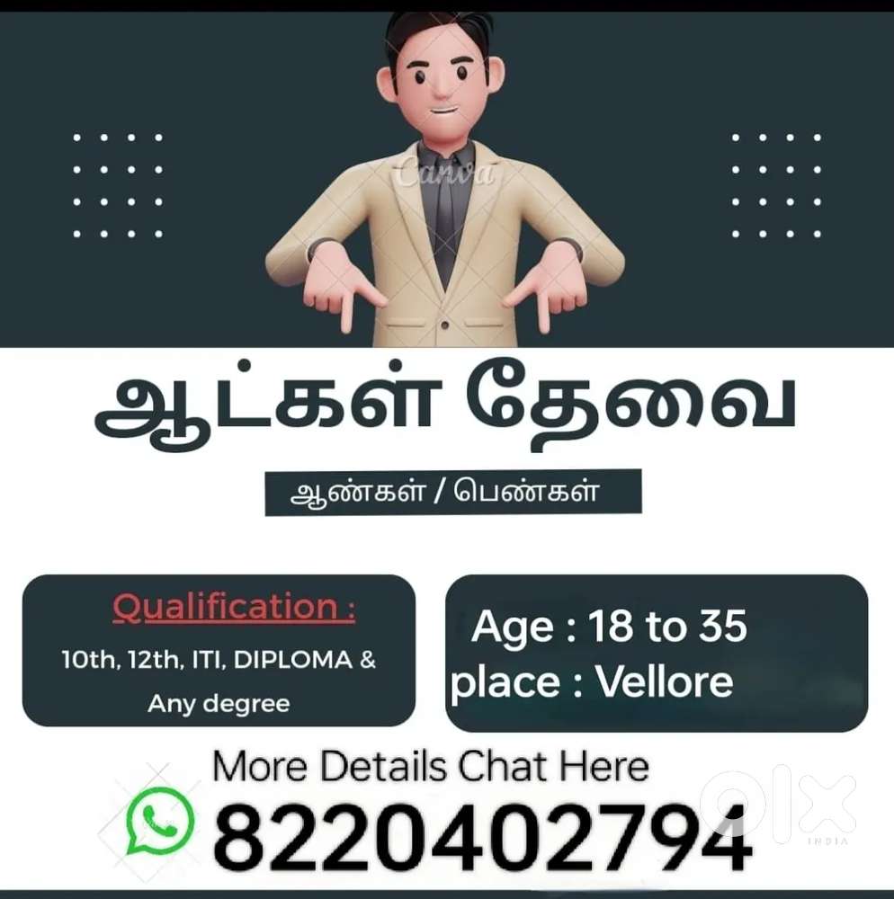 - ₹ 15000 - 18000 | MonthlyPermanent workSattuvachari, Vellore6 days ago