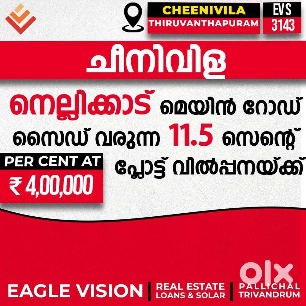 - ₹ 5,00,0004,5,6 cent plot in Meppukada, malayinkeezhuKattakada, Thiruvananthapuram4 days ago