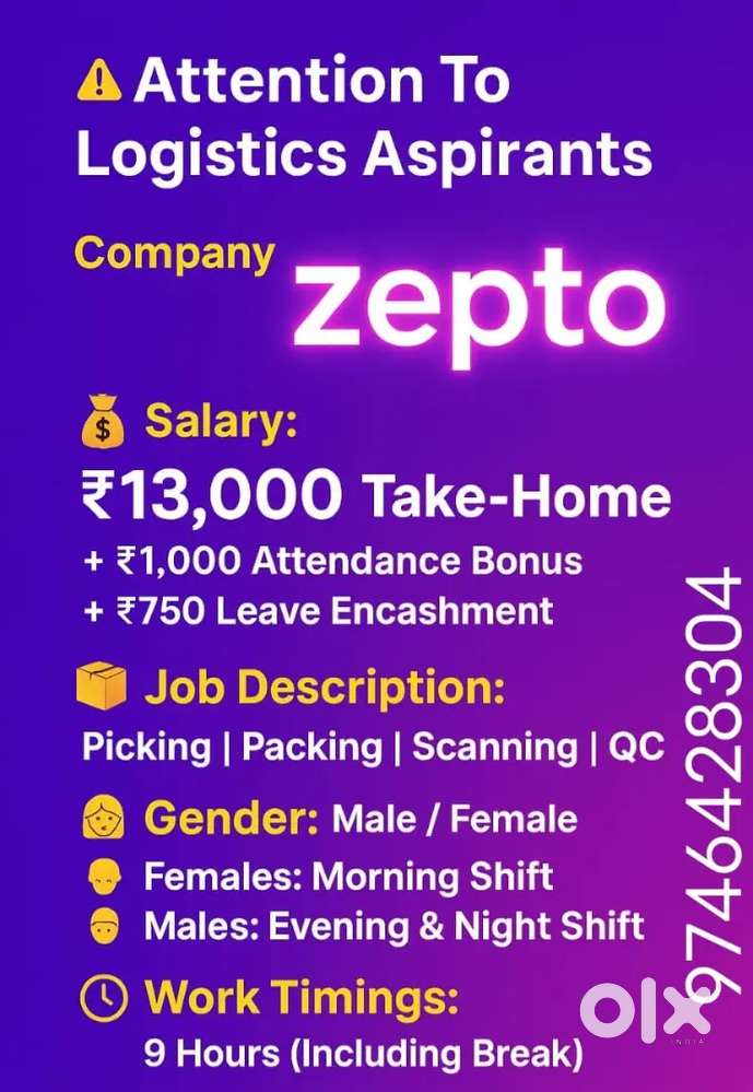- ₹ 14000 - 17000 | MonthlyThengod zepto vacancyThengod, KochiToday