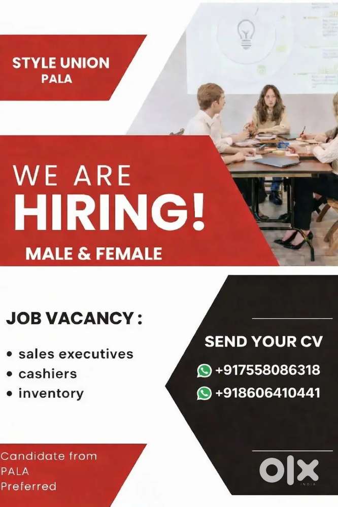 - Today₹ 13500 - 25000 | MonthlySALES STAFF (MALE AND FEMALE)Aruvithura, Erattupetta