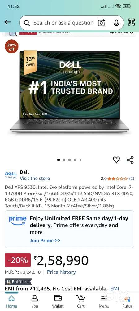 - ₹ 1,20,000Dell xps 15 9630Kair, Delhi2 days ago