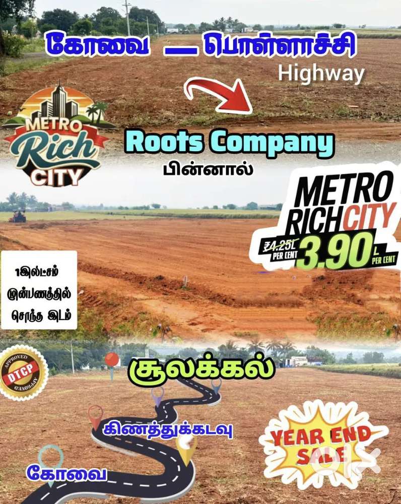 - ₹ 3,90,000DTCP Plots Roots Pvt Ltd back side Launch Price 3,90,000 Per CentUkkadam, Coimbatore23 Dec
