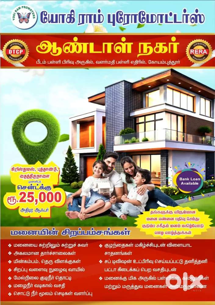 - ₹ 3,90,000Future-Ready DTCP Plots Near Roots Pvt Ltd back side – Book NowSunderapuram, Coimbatore6 days ago