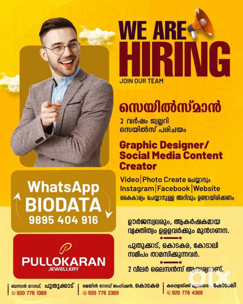 - ₹ 10000 - 18000 | MonthlyExperienced Saleman and social media content CreatorAmballor, PuthukkadYesterday