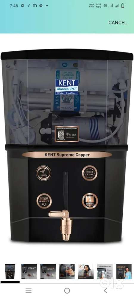 - ₹ 8,999New seal peace Kent supreme copper RO water purifierGolnaka, Hyderabad27 Dec