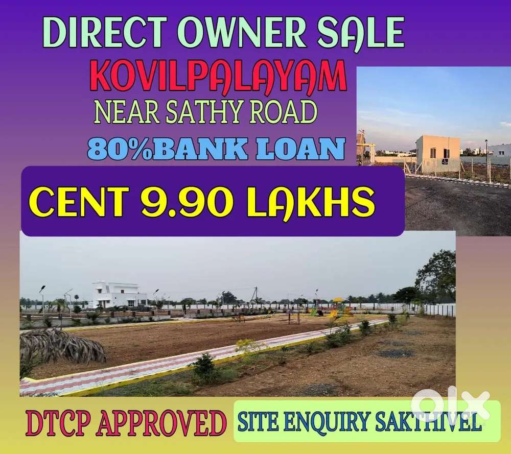 - ₹ 6,30,000coimbatore kovilpalayam near sathy road DTCP PLOTS available for sale.Kovilpalayam, Coimbatore18 Mar