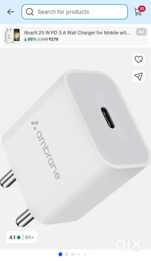 - ₹ 400Ambrane 20w PD charger with cablePadugupadu, NelloreToday