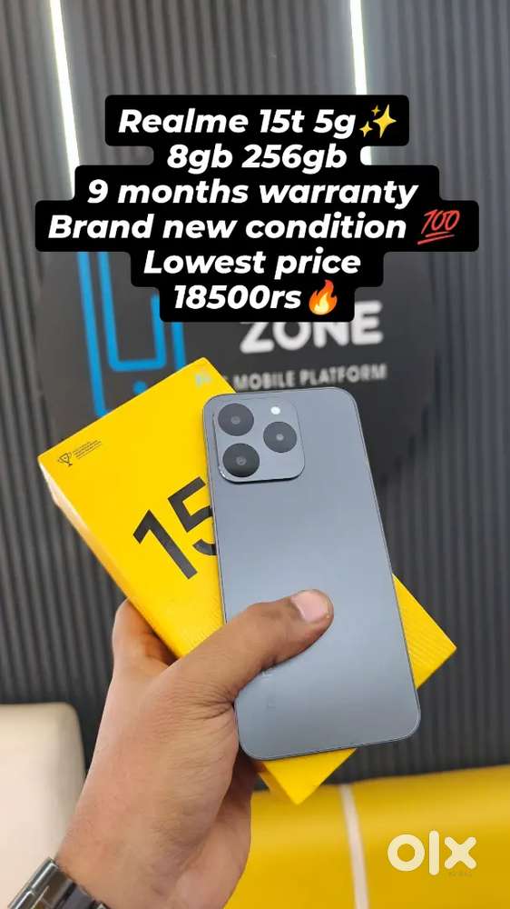 - ₹ 18,500TodayRealme 15t 8gb 256gb 8 months warranty brand new condition lowest pricGandhipuram, Coimbatore