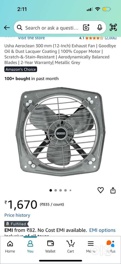 - ₹ 1,600Exhaust fan usha 12 inch is for saleKuralkuttai, UdumalaipettaiToday