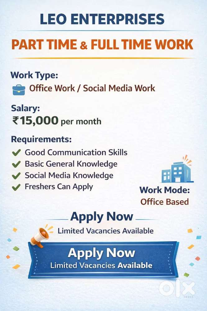 - ₹ 10000 - 15000 | MonthlyParty time and full time work Leo enterprisesArya Nagar, KanpurToday