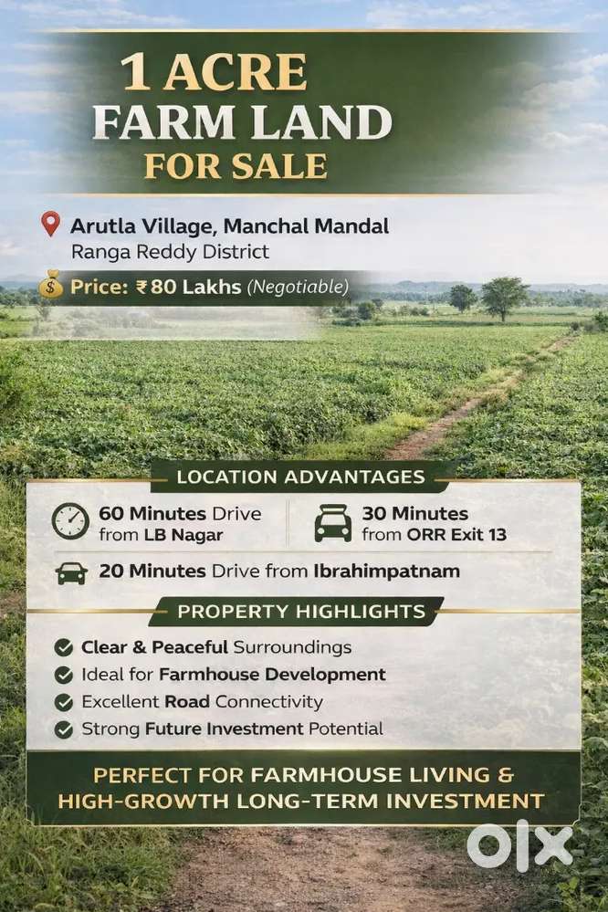 - ₹ 80,00,000Farm land for saleLB Nagar, HyderabadYesterday