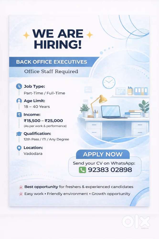 - ₹ 13000 - 35000 | MonthlyOffice Assistant WorkKothi, Vadodara21 Dec