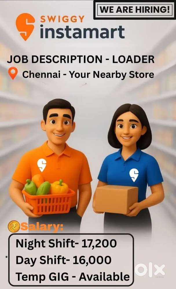 - ₹ 8000 - 17200 | MonthlyHiring Now swiggy instamart Loader &Temp GIGAlandur, ChennaiToday