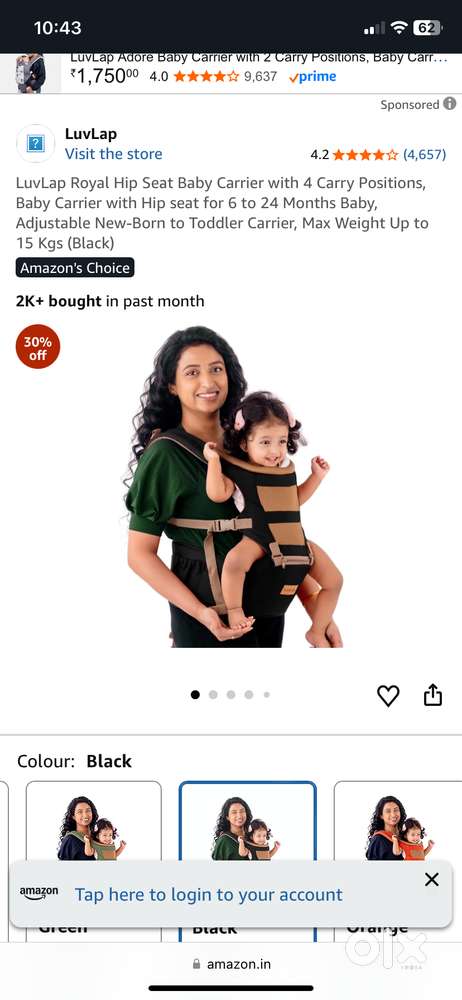 - ₹ 1,100Unused LuvLap baby hip carrierKandivali West, MumbaiToday