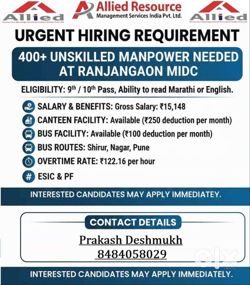 - ₹ 15000 - 17800 | MonthlyInterview Opportunity At Ranjangaon MIDCRanjangaon MIDC Area, Ranjangaon MIDCToday