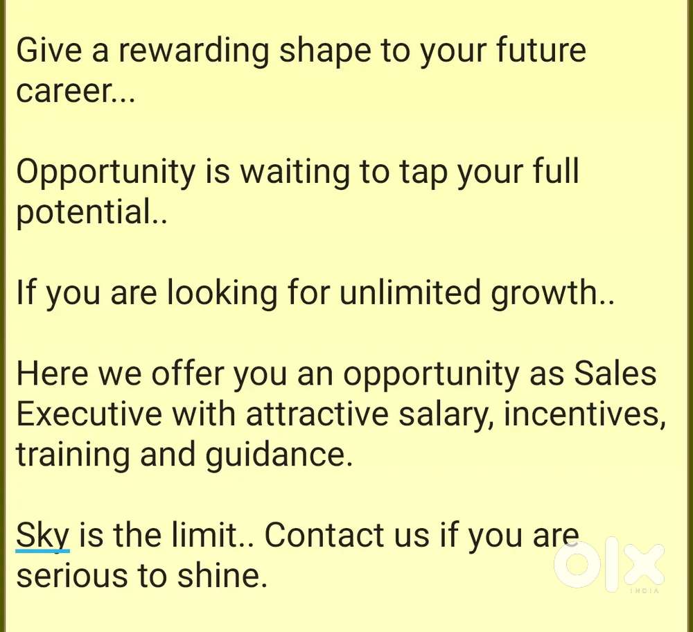 - ₹ 15000 - 16000 | MonthlyUrgent requirement sale executiveTejaswi Nagar, HyderabadToday