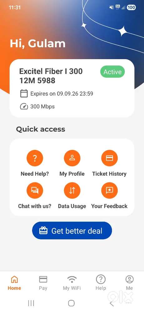 - ₹ 4,500Excitel internet Active till sep 2026Arvind Colony, HyderabadToday