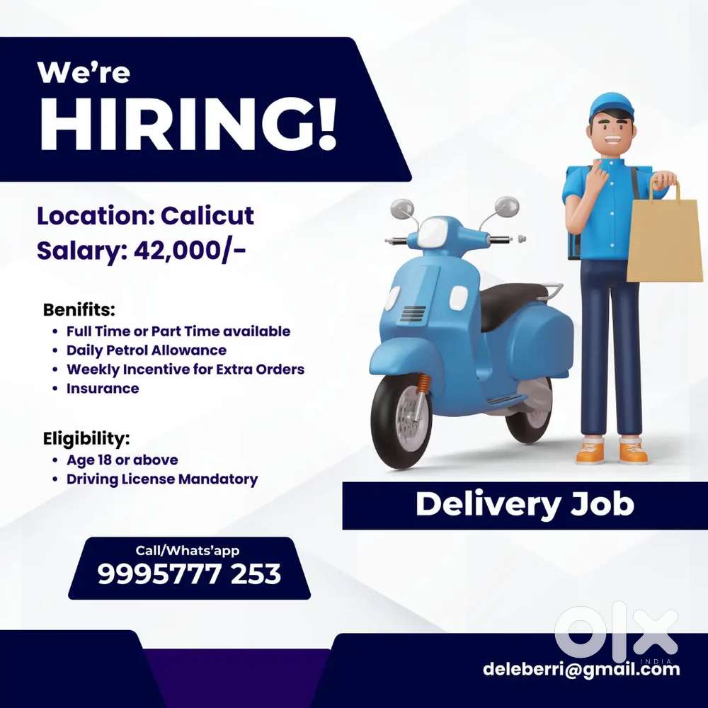 - ₹ 42000 - 45000 | MonthlyVaccancy for Delivery Job in CalicutCalicut Beach, KozhikodeToday