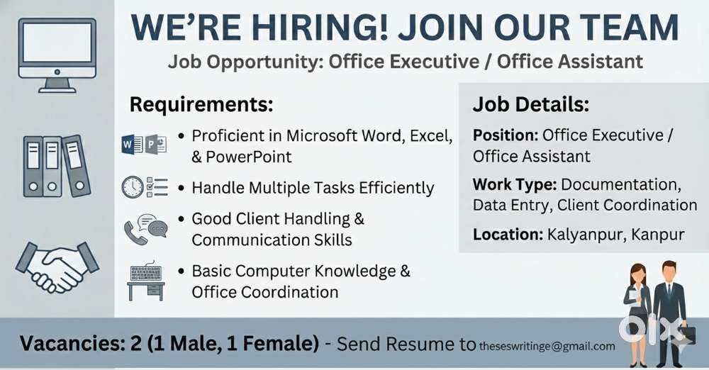 - ₹ 8000 - 12000 | MonthlyOffice Executive (Male & Female Candidates Required)IIT Colony, KanpurYesterday