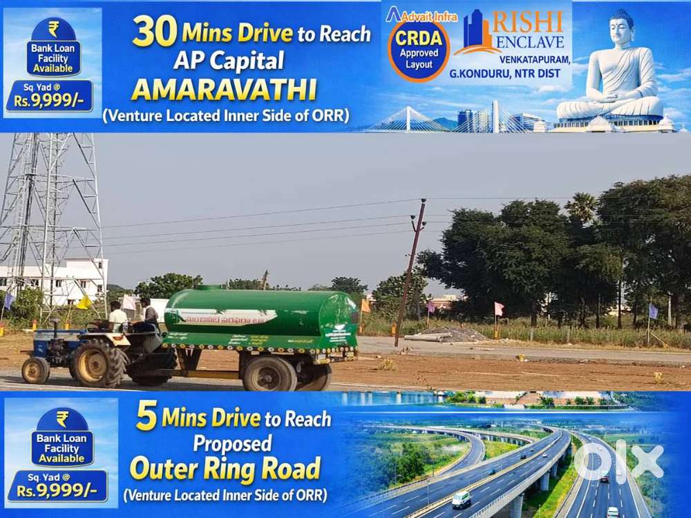 - ₹ 10,00030 Mins Drive to Reach AP Capital Amaravathi # CRDA Layout # 90% LoanAMARAVATHI, Thullur23 Dec