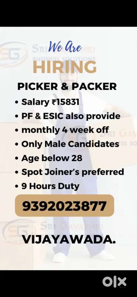 - ₹ 15000 - 16000 | MonthlyWanted picker and packers at VijaywadaAuto Nagar, Vijayawada2 days ago