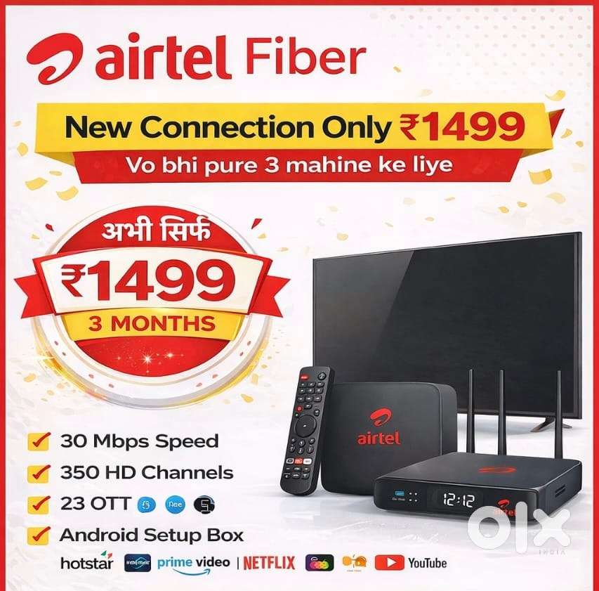 - ₹ 499Airtel Fiber New Connection Offer ₹1499 for 3 MonthsNagla Haweli, AgraToday