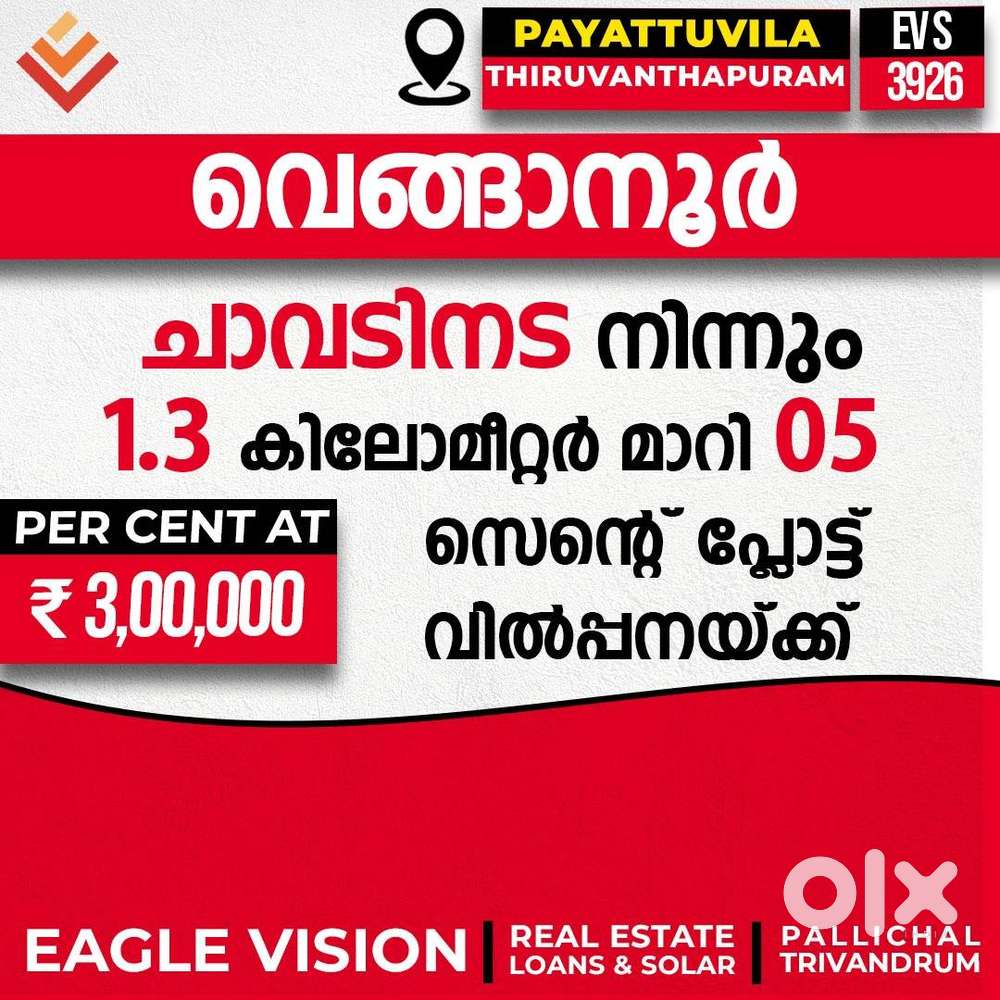 - ₹ 3,00,00005 - cent residential plot for sale in Chavadinada VenganoorPeringammala, Thiruvananthapuram4 days ago