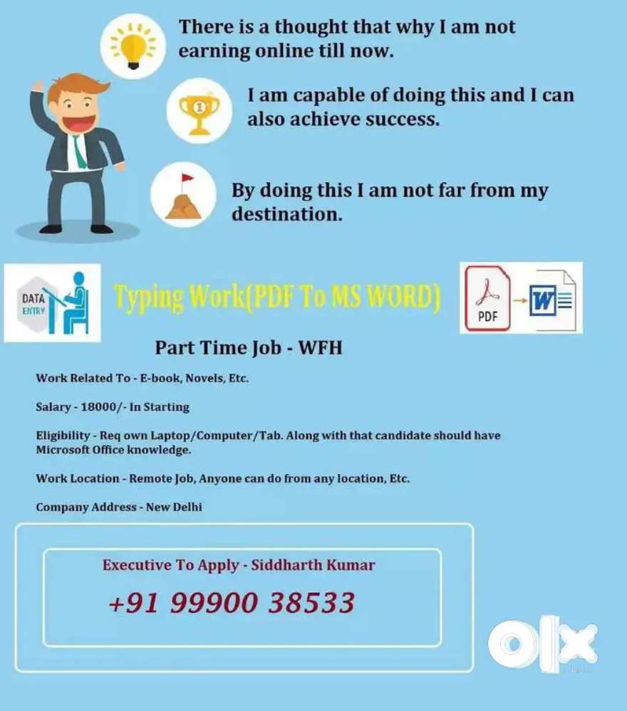 - ₹ 400 - 500 | HourlyPart time full time mobile typing work home with daily paymentPurbanchal, Asansol MC1 Apr