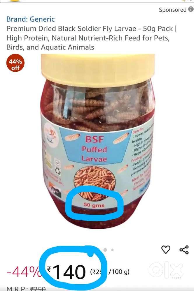 - ₹ 50Dried Black Soldier Fly (BSF) Larvae for all petsDGP Nagar No 2, Nashik29 Nov