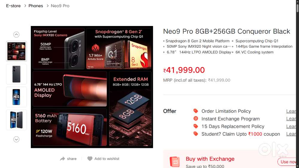 - ₹ 28,000iQOO Neo 9 Pro 8/256 – Excellent Condition – With Box & ChargerChhatabla, GorakhpurYesterday