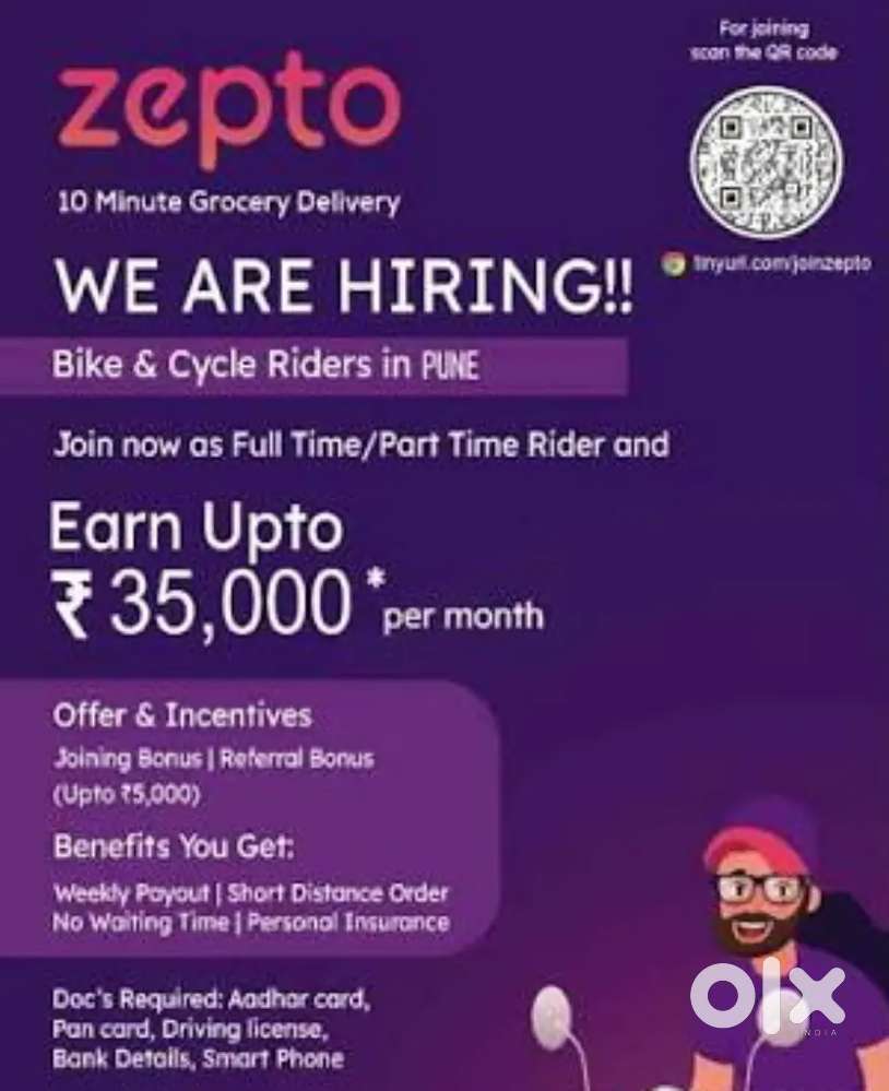 - ₹ 35000 - 50000 | WeeklyWanted Delivery Riders for Swiggy zomato BlinkitAndheri East, MumbaiYesterday