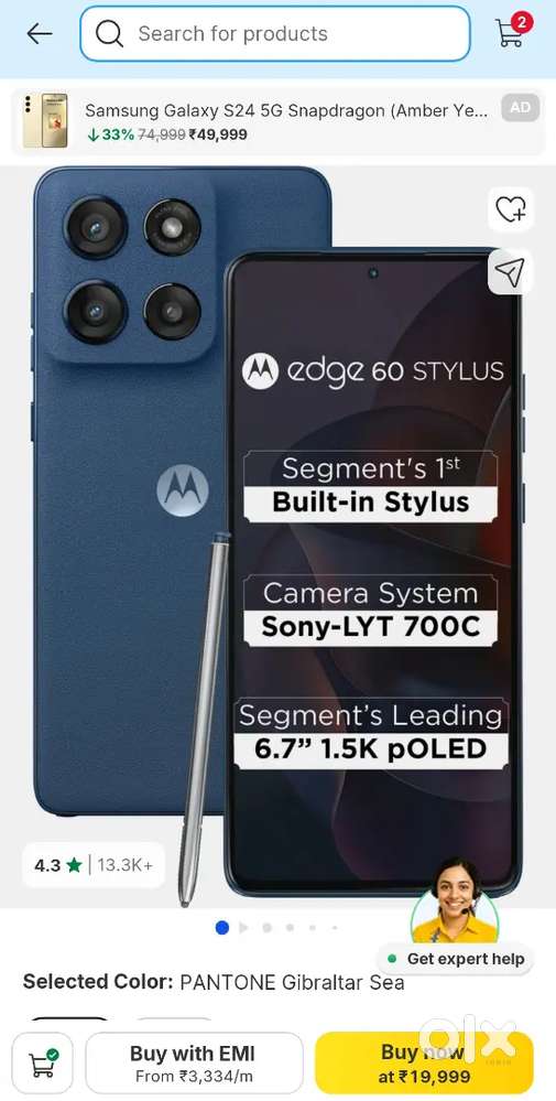 - ₹ 17,999Edge 60 Stylus (PANTONE Gibraltar Sea, 256 GB)Sepoy Bazar, Medinipur22 Dec