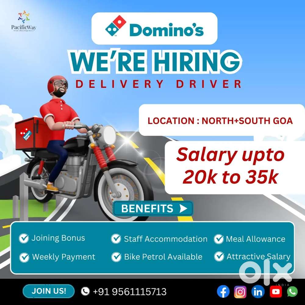 - ₹ 20000 - 30000 | MonthlyGoa - Domino's Delivery Partner JobPDA Colony, PorvorimToday