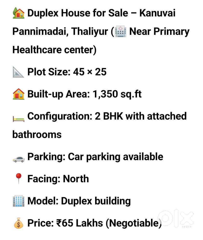 - ₹ 60,00,0002 BHK - 3 Bathroom - 1000 sqftDTCP APPROVED HOUSE MADUKKARAI NEAR KALIVANI SCHOOLMadukkarai, CoimbatoreYesterday