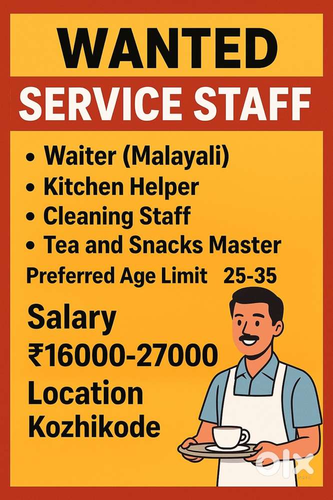 - ₹ 15000 - 18000 | MonthlyReasturant സർവീസ് സ്റ്റാഫിനെ ആവശ്യം ഉണ്ട്Thondayad, Kozhikode1 Dec