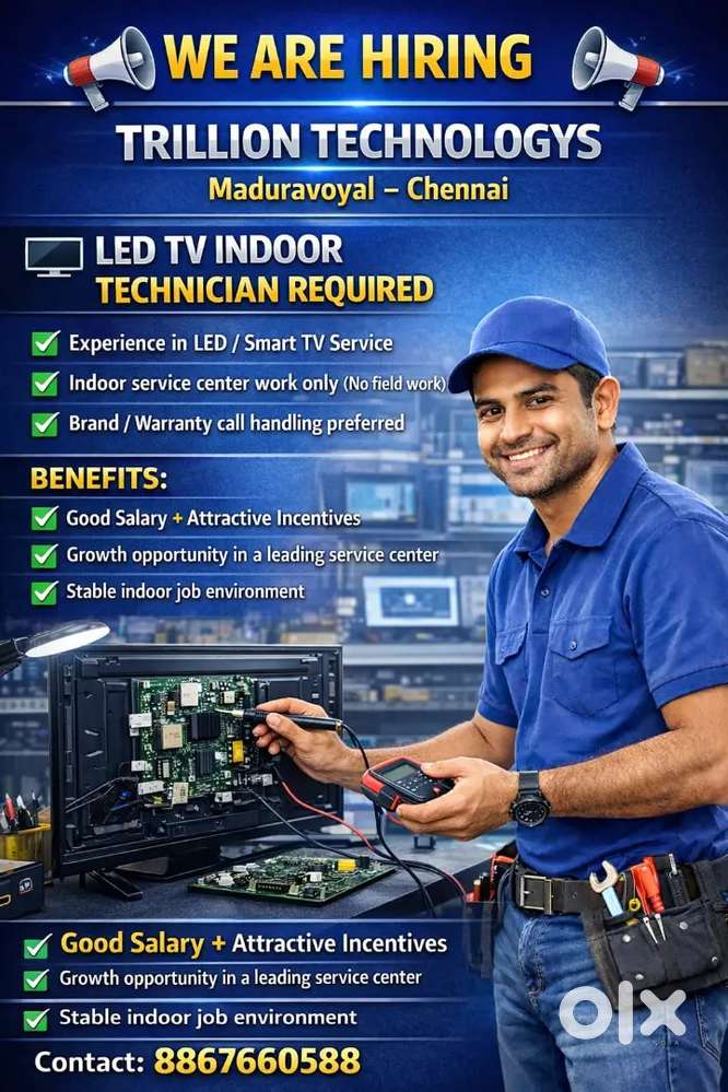 - ₹ 15000 - 45000 | Monthlyഎൽഇഡി ടി.വി ടെക്നീഷ്യൻ ആവശ്യമാണ് അനുഭവമുള്ള എൽഇഡി ടി.വി ടെക്നീഷ്യൻErnakulam, ParavurToday