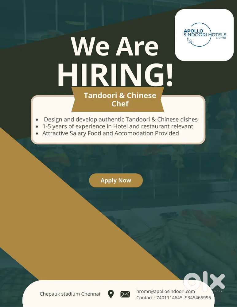 - ₹ 25000 - 35000 | MonthlyTandoori Chef, Chinese ChefChepauk, ChennaiToday