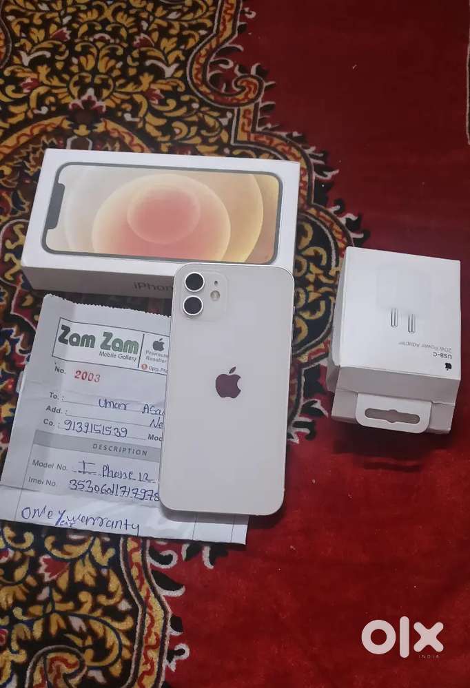 - ₹ 24,000iPhone 12 dual sim128g 5G white colour 100% battery bill box chargerGulshan Nagar, NashikToday