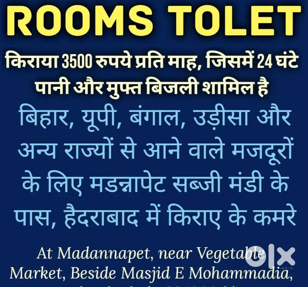 - ₹ 3,5002 BHK - 3 Bathroom - 1100 sqftRooms available for BachelorMadannapet Colony, Hyderabad3 days ago