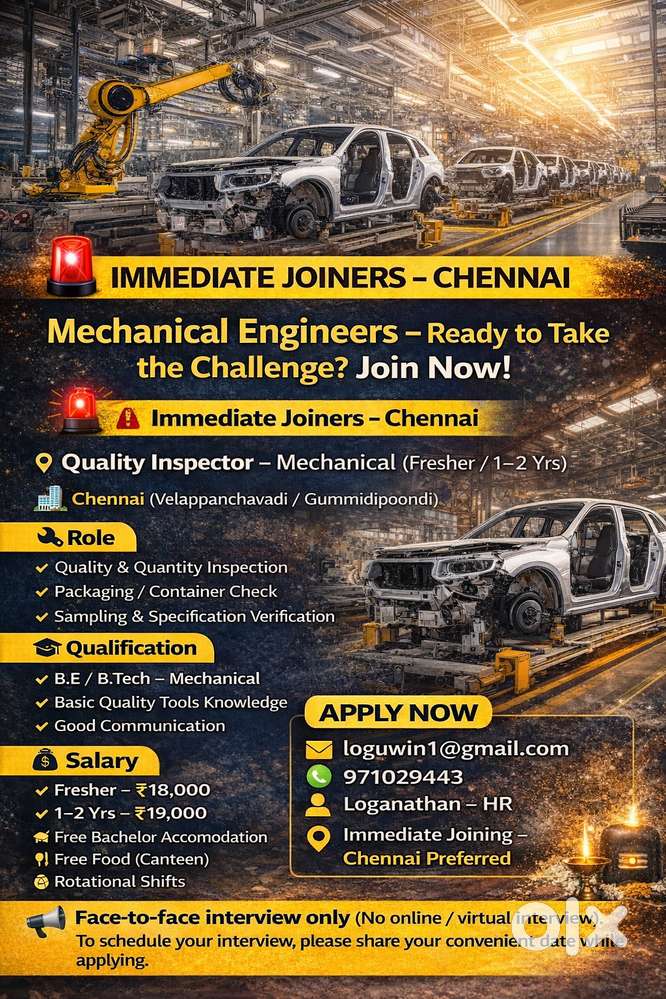 - ₹ 18000 - 19000 | MonthlyMechanical Engineers – Ready to Take the Challenge? Join Now!Poonamallee, ChennaiToday