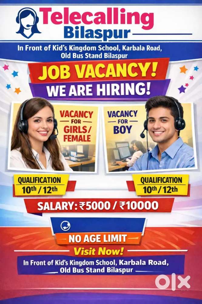 - ₹ 6000 - 15000 | Monthlyऑफ़िस कार्य हेतु टेलीकॉलिंग महिलाओ एवं युवतियो की अतिशीघ्र आवश्यकता हैVyapar Vihar, BilaspurYesterday