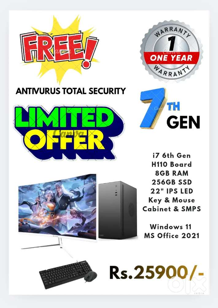 - ₹ 25,900NEW i7 6th GEN / Computer Set With / 22 IPS Led / 3 Year WARRANTY LEDPalanpur Gaon, SuratToday